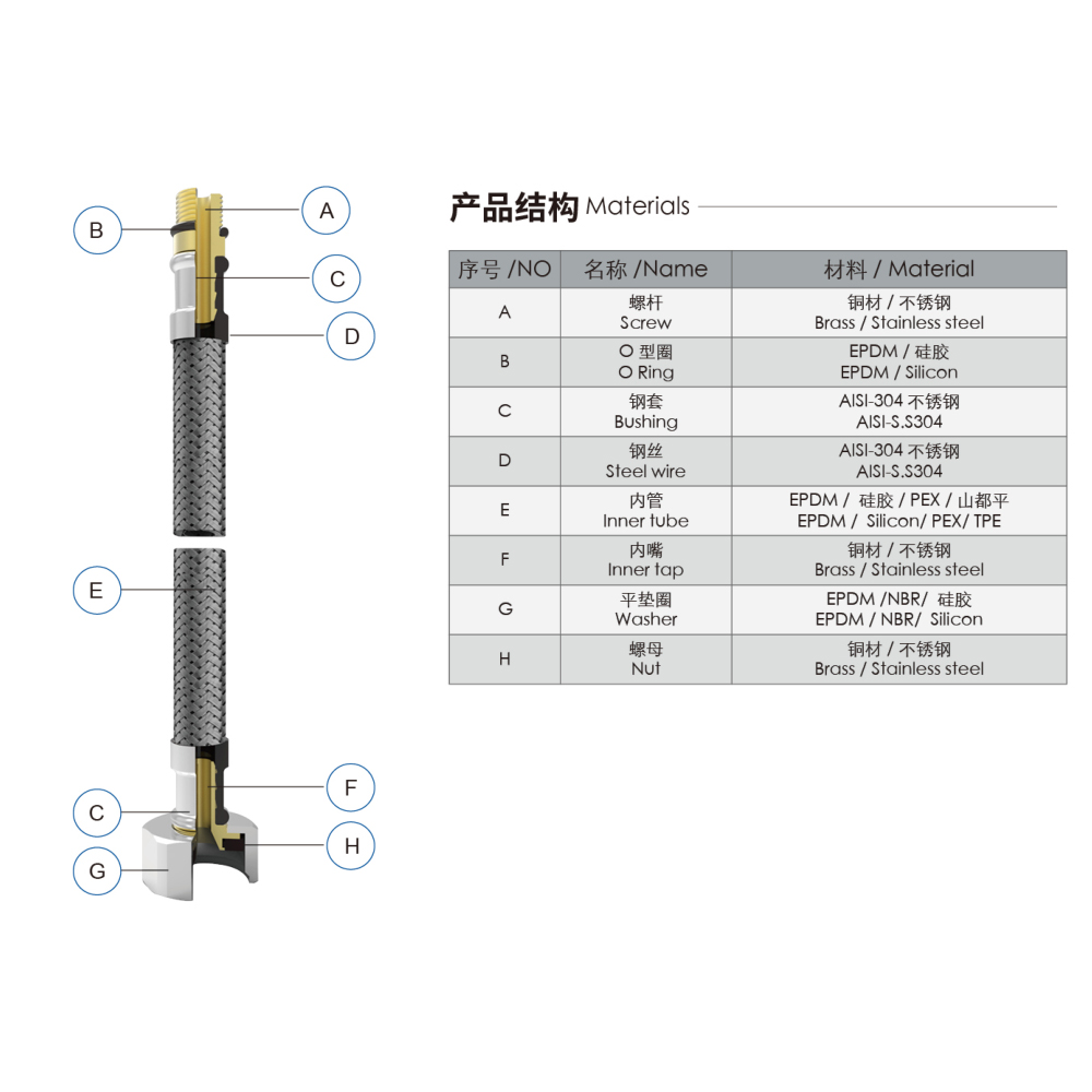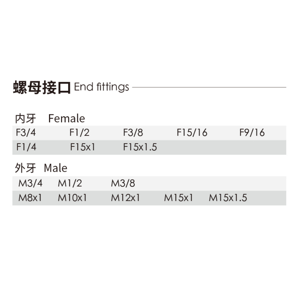 型號:龍頭用管軟管外徑:9mm/10mm/11mm/12mm/13mm/14mm 軟管內(nèi)徑: 6mm/6.5mm/7.3mm/8.3mm/9.3mm 接頭內(nèi)孔直徑:4.3mm/4.5mm/5.8mm/6.8mm 最小彎曲度: 25mm/30mm 工作溫度: ≤ 90℃ 工作壓力:≤ 10 Bar